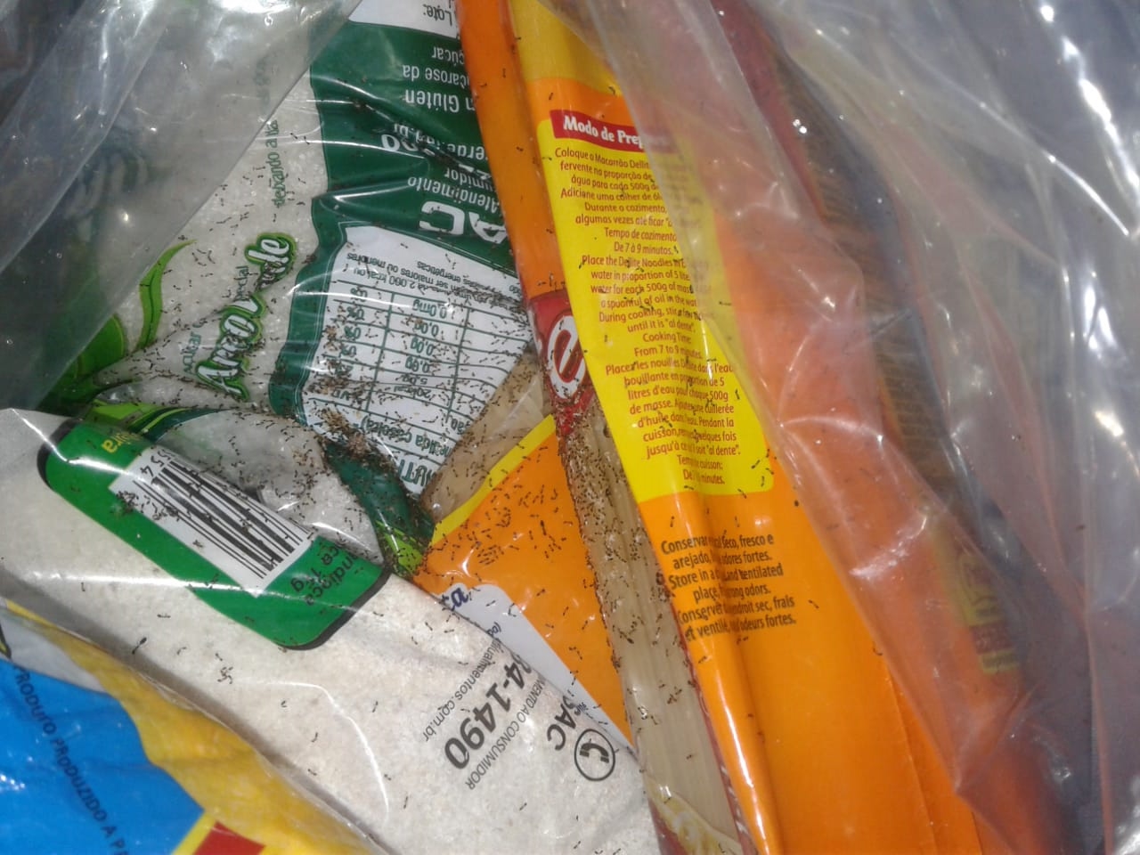 Outra responsável por um aluno, que é moradora da localidade do Rio Seco, também denunciou a situação em que estava a “cesta” após ser entregue, com uma grande quantidade de formigas por toda parte.