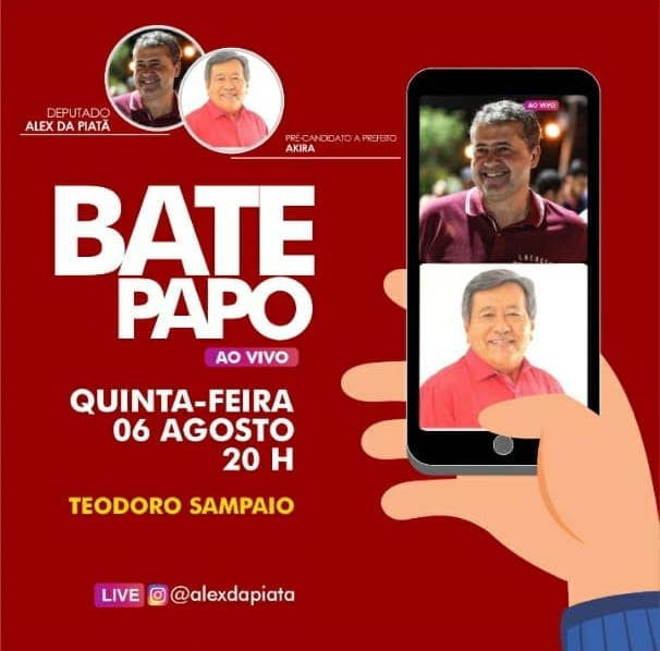 O pré-candidato a prefeito de Teodoro Sampaio, Akira Suga (PSB), participará de uma live hoje (6/8) a partir das 19h, com o Deputo Estadual Alex da Piatã (PSD).