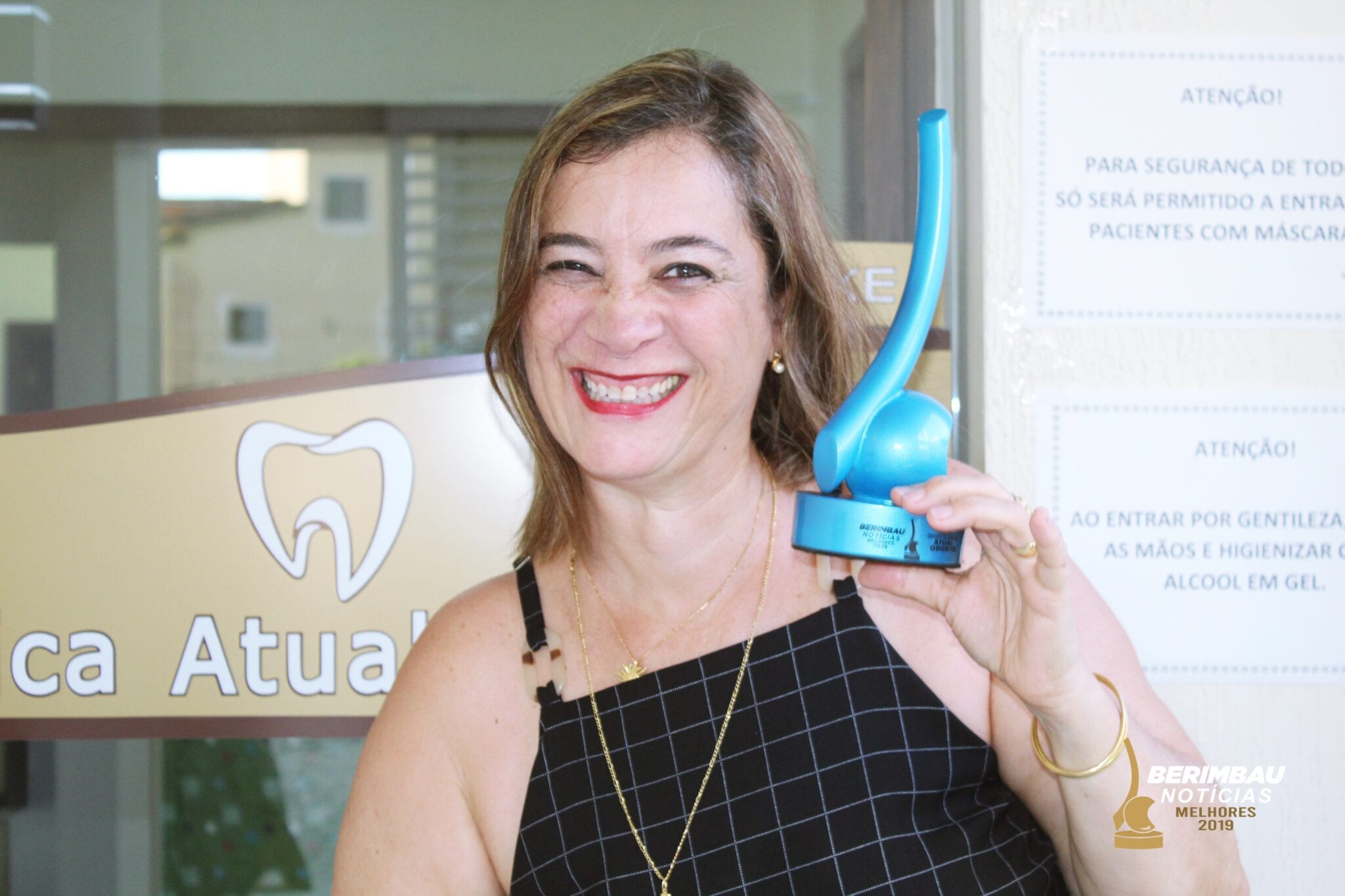 Pelo terceiro ano consecutivo, a Dra. Fátima foi homenageada com o troféu “Melhores” de 2019, do portal Berimbau Notícias. O bom atendimento e a infraestrutura da Atual Odonto são fatores que a tornaram referência no ramo.
