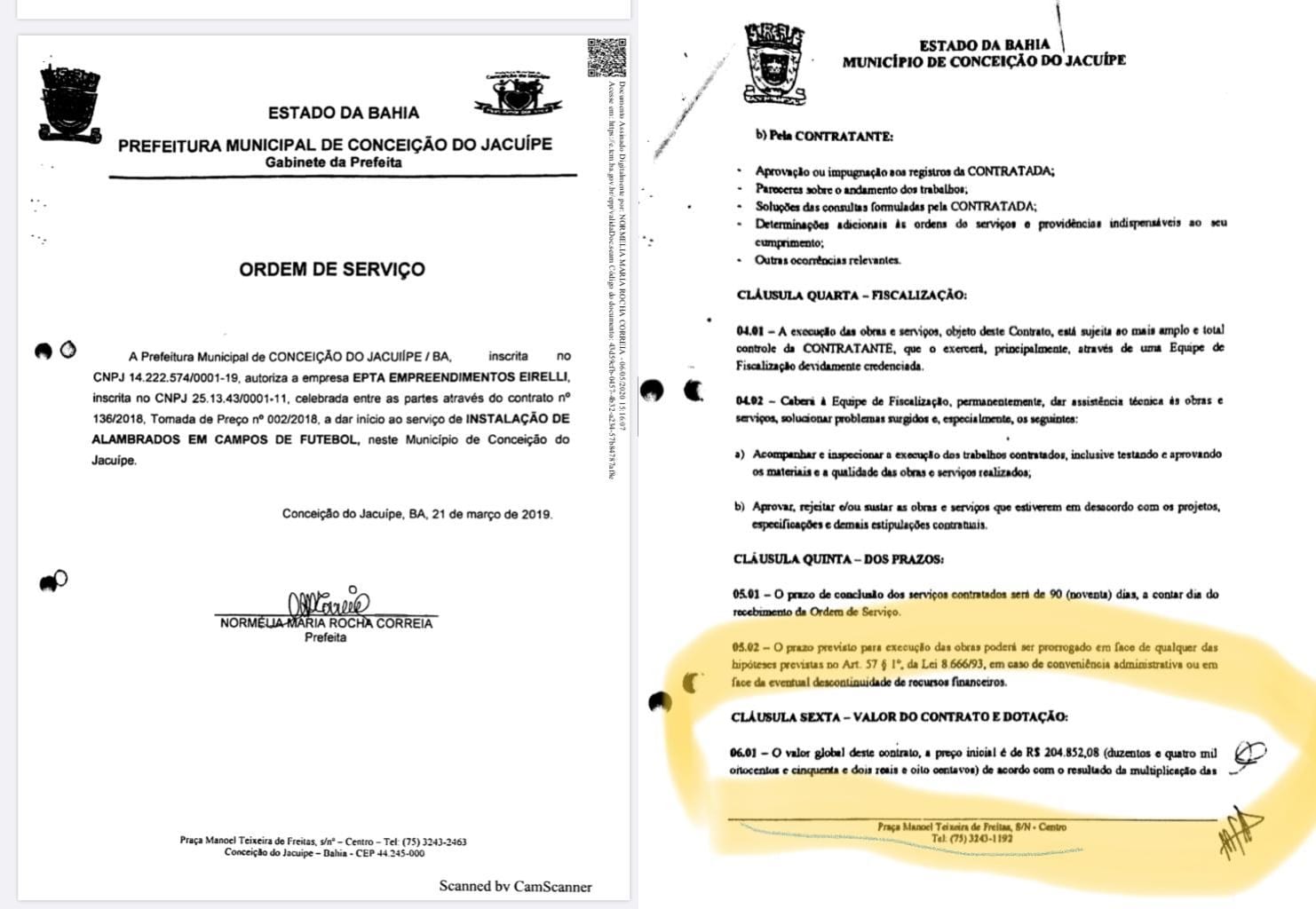 Segundo documentos enviados pela parlamentar ao BN, no ano de 2018, foi realizada uma licitação no valor de R$ 204.852,08 reais, para instalação de alambrados em campos de futebol da cidade pela empresa EPTA Empreendimentos Eirelli.