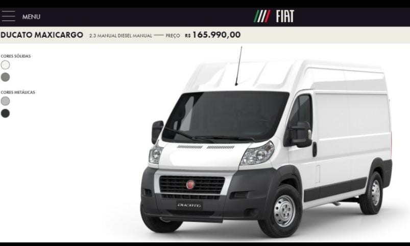 Este veículo 0Km, ano e modelo 2020, é comercializado no valor de R$ 165.990,00, conforme informa o site da montadora Fiat.