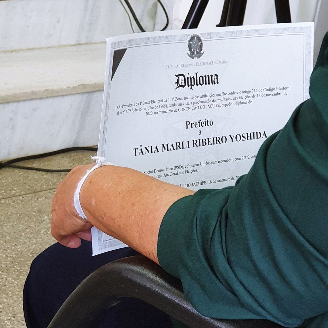 Em uma rede social, a prefeita eleita declarou estar muito emocionada e feliz com a diplomação. “Hoje, com muita alegria e emoção, fomos diplomados. Estou muito orgulhosa por todo o processo democrático que vivenciamos, e que chegamos até aqui. Podem ter a certeza que eu e meu vice Yasomi Yoshida iremos honrar o nosso compromisso com o povo de Conceição do Jacuípe, trabalhando intensamente para cuidar e melhorar a qualidade de vida de cada cidadão. Obrigada a Deus em primeiro lugar e todos vocês que confiaram e seguiram firmes conosco! Agora, é trabalhar!”, declarou Tânia Yoshida.