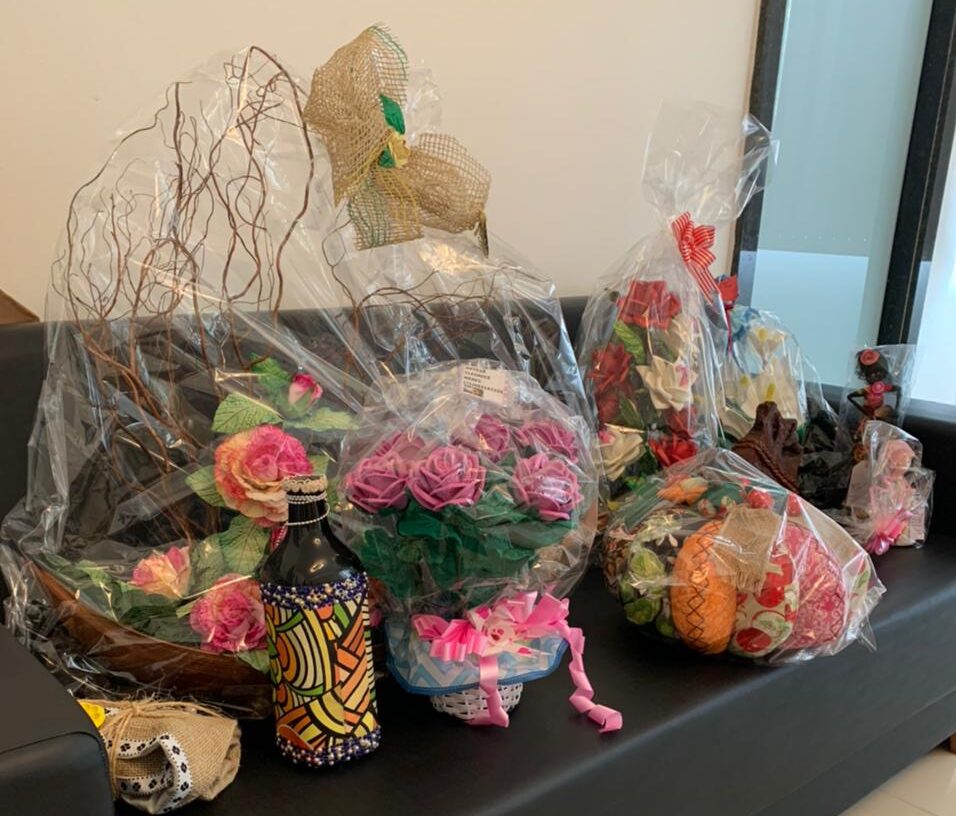 “Acabei sendo carinhosamente presenteada por elas com seus lindos trabalhos”, disse a prefeita em agradecimento à gentileza das artesãs.