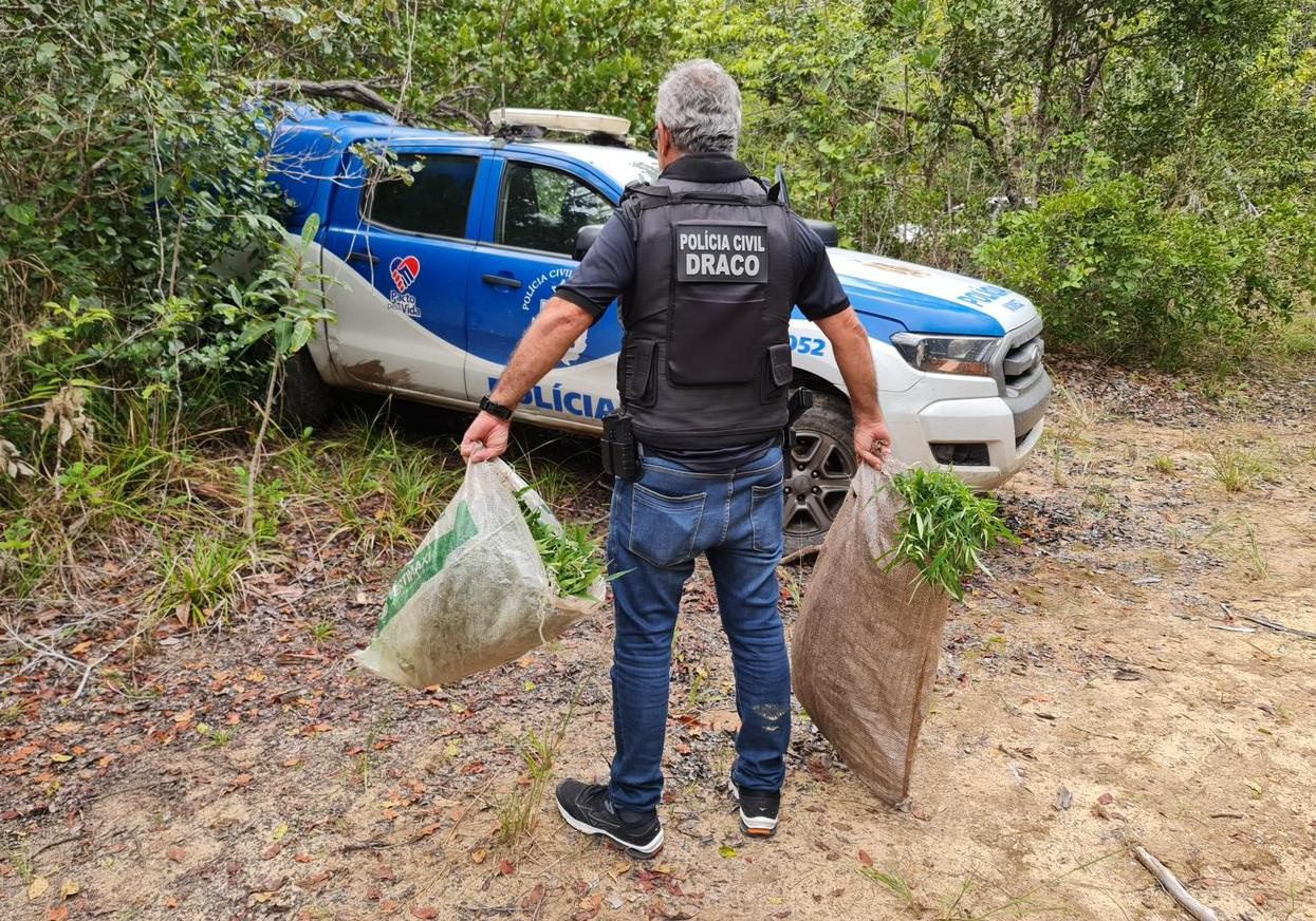 “No local, foi identificado o esconderijo dos criminosos, com utensílios de uso e estoque de material para cultivo da erva. Todos os objetos foram destruídos pelos policiais”, disse o diretor do Draco, delegado José Bezerra.