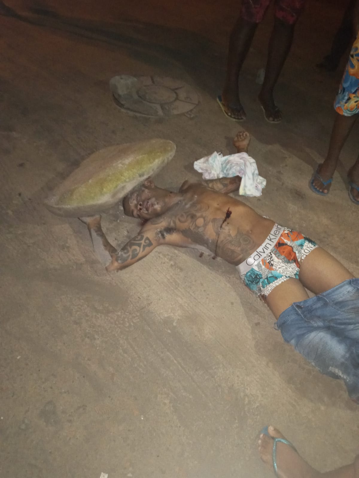 Segundo informações, a vítima foi encontrada caída com perfurações provocadas por arma de fogo e um pedra grande jogada sobre a cabeça. O crime foi praticado por homens de moto.