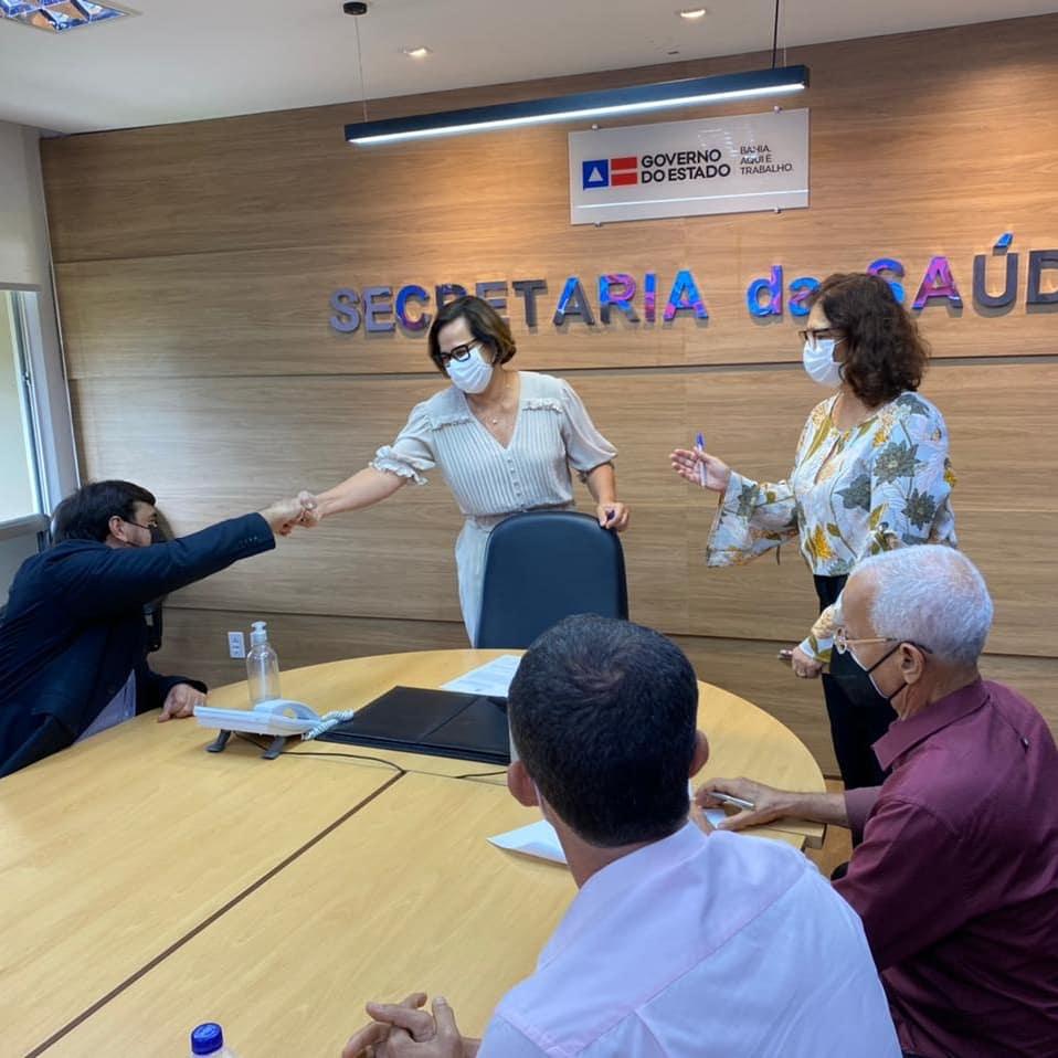 Nesta quinta-feira (12/8), o prefeito, João Bahia e o secretário de Saúde, Teonis Lins estiveram na Secretaria de Saúde do Estado (SESAB) para assinar o termo de cessão de uso de vários equipamentos que o Estado cedeu para o hospital Municipal de Amélia Rodrigues.