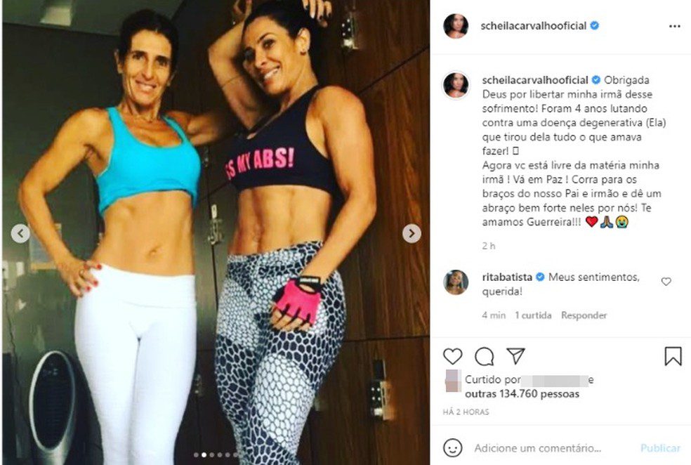A dançarina Scheila Carvalho usou seu Instagram nesta quinta-feira (12/8), para se despedir da irmã, Vânia, que morreu de complicações da ELA (Esclerose Lateral Amiotrófica).