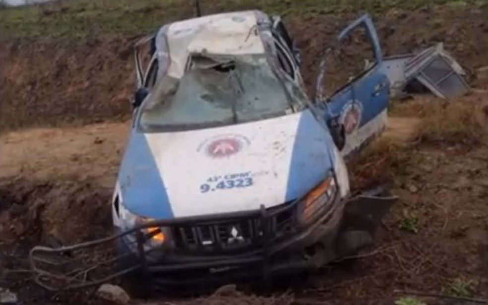 Dois policiais militares ficaram feridos após a viatura em que eles estavam capotar na BR-101, no trecho entre Teixeira de Freitas e Itamaraju, no extremo sul da Bahia.