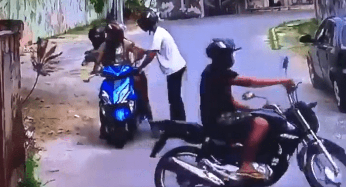 SEM LIMITES! Dupla assalta mulheres em motocicleta e agride uma das vítimas; veja vídeo