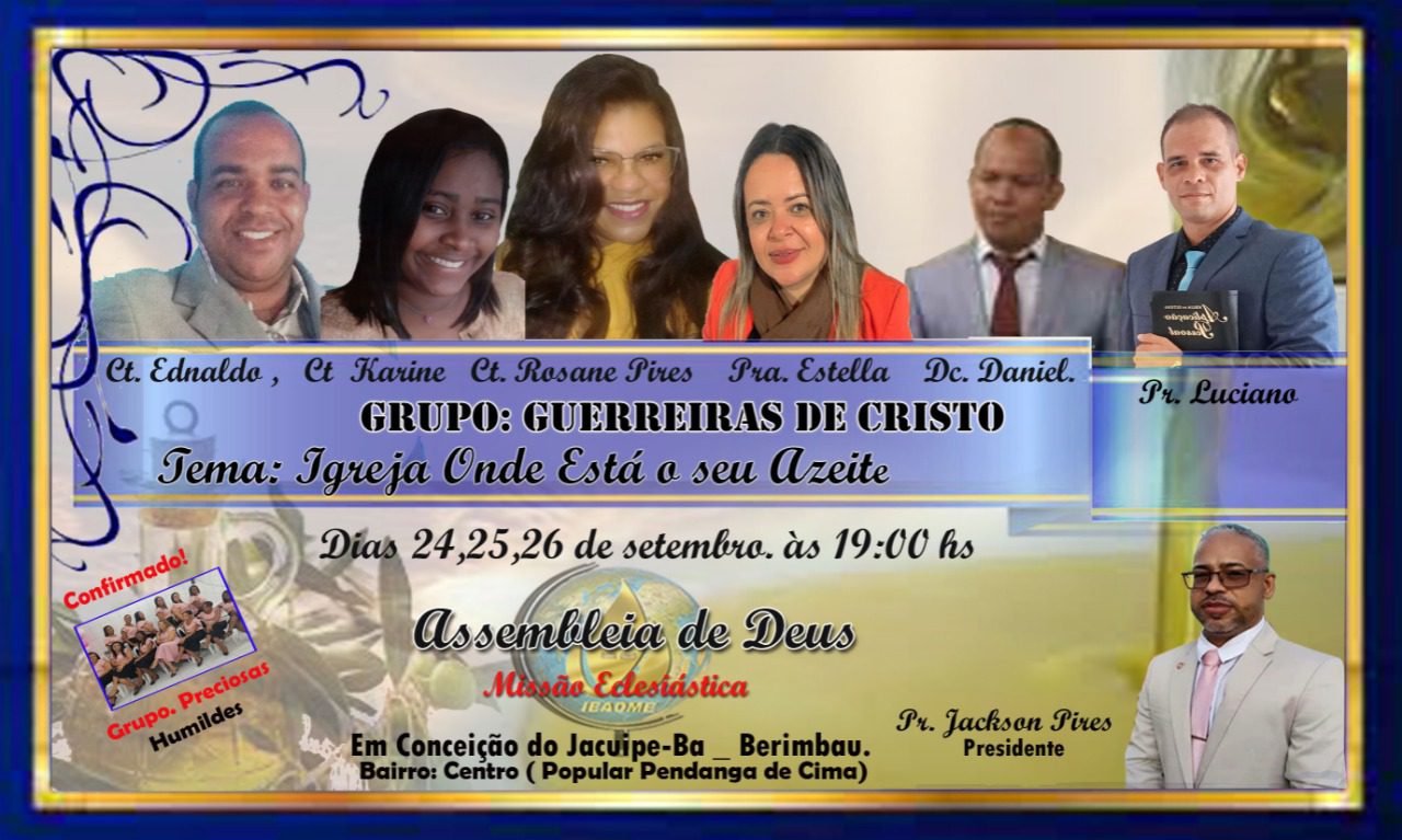 A Igreja Assembleia de Deus Missão Eclesiástica realiza uma comemoração em Conceição do Jacuípe, que teve inicio nessa sexta-feira (24/9) e continuará neste sábado (25/9) e no domingo (26/9).