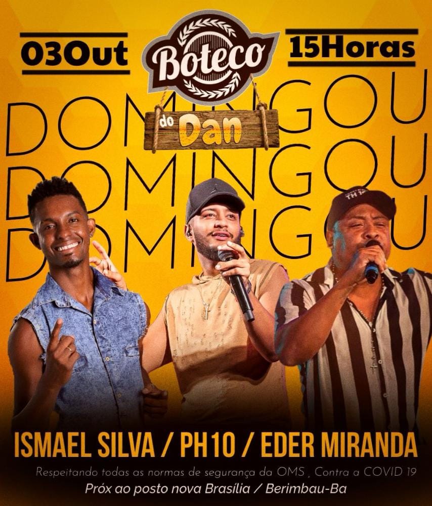 NESTE DOMINGO (3)! Ismael Silva, PH10 e Eder Miranda no Boteco do Dan em Conceição do Jacuípe