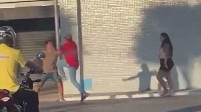 CONFUSÃO GENERALIZADA: Homem é espancado por dupla após agredir mulher no Ceará; vídeo