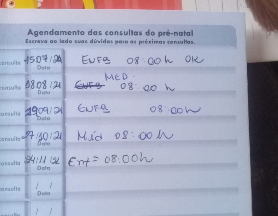 Conforme informado pelos denunciantes, algumas pacientes, que estão gestantes, realizam a marcação das consultas, mas não conseguem ser atendidas por conta da falta de médicos e enfermeiros.