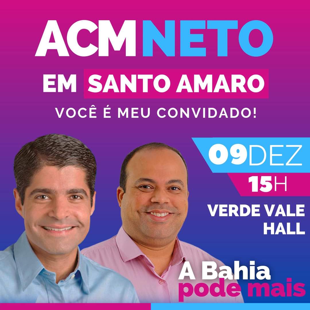 O ex-prefeito de Salvador e pré-candidato a disputa pelo Governo do Estado, ACM Neto (Democratas) estará visitando o município de Santo Amaro nessa quinta-feira (9/12).