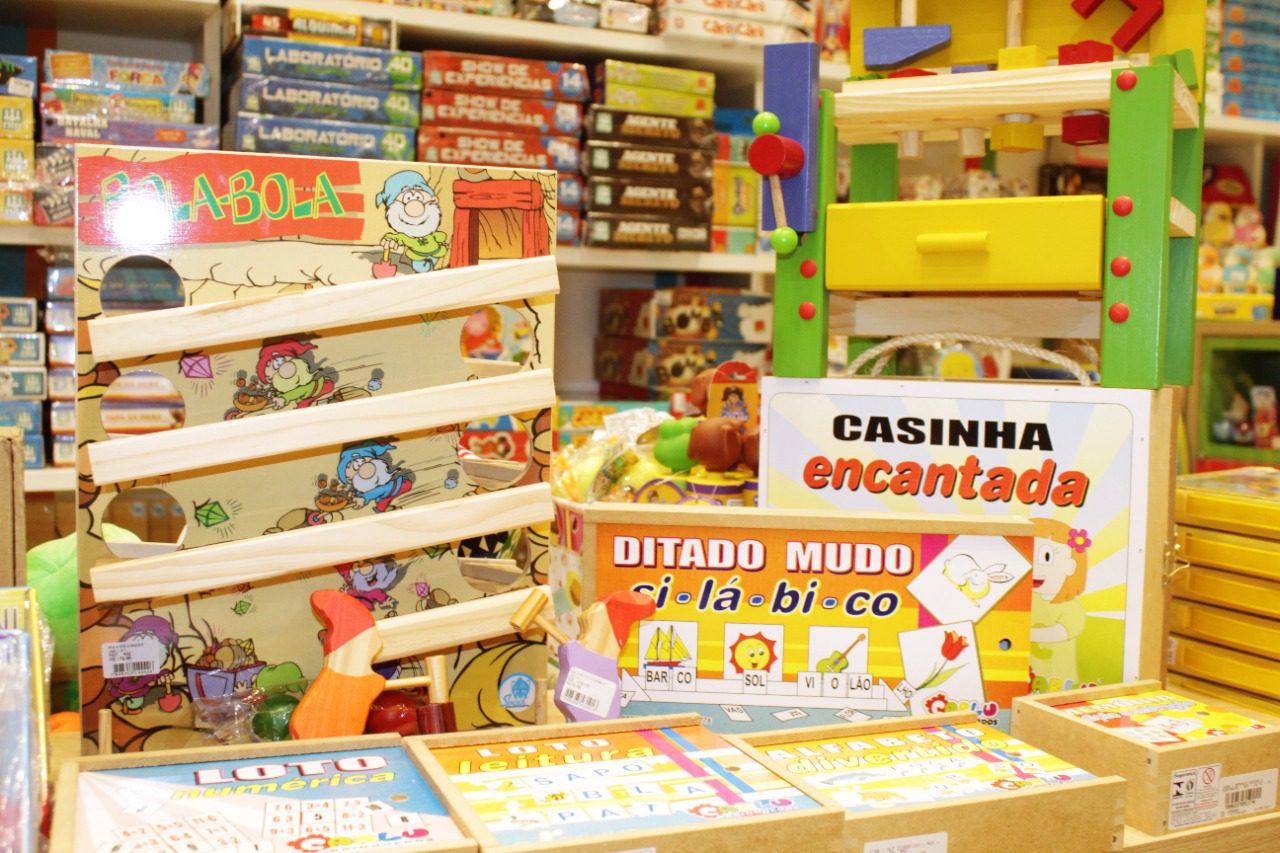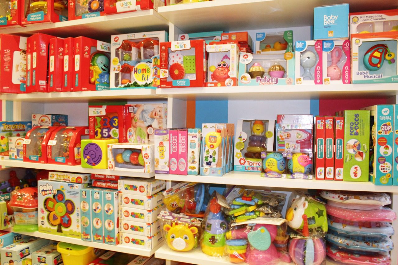 A loja conta com uma grande variedade de produtos, brinquedos, artigos recreativos, etc.