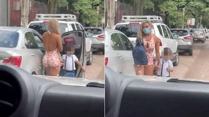 Mulher é criticada por levar filho à escola com roupa de academia e pais pedem expulsão do menino