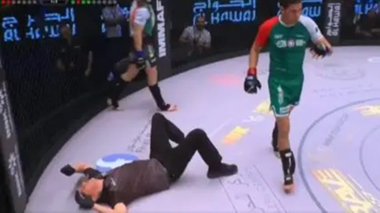 Os árbitros de MMA costumam salvar os lutadores que são nocauteados, mas dessa vez foi diferente. Durante as semifinais da Supercopa Internacional de MMA, no Bahrein, na quinta-feira (10/3), aconteceu o improvável.