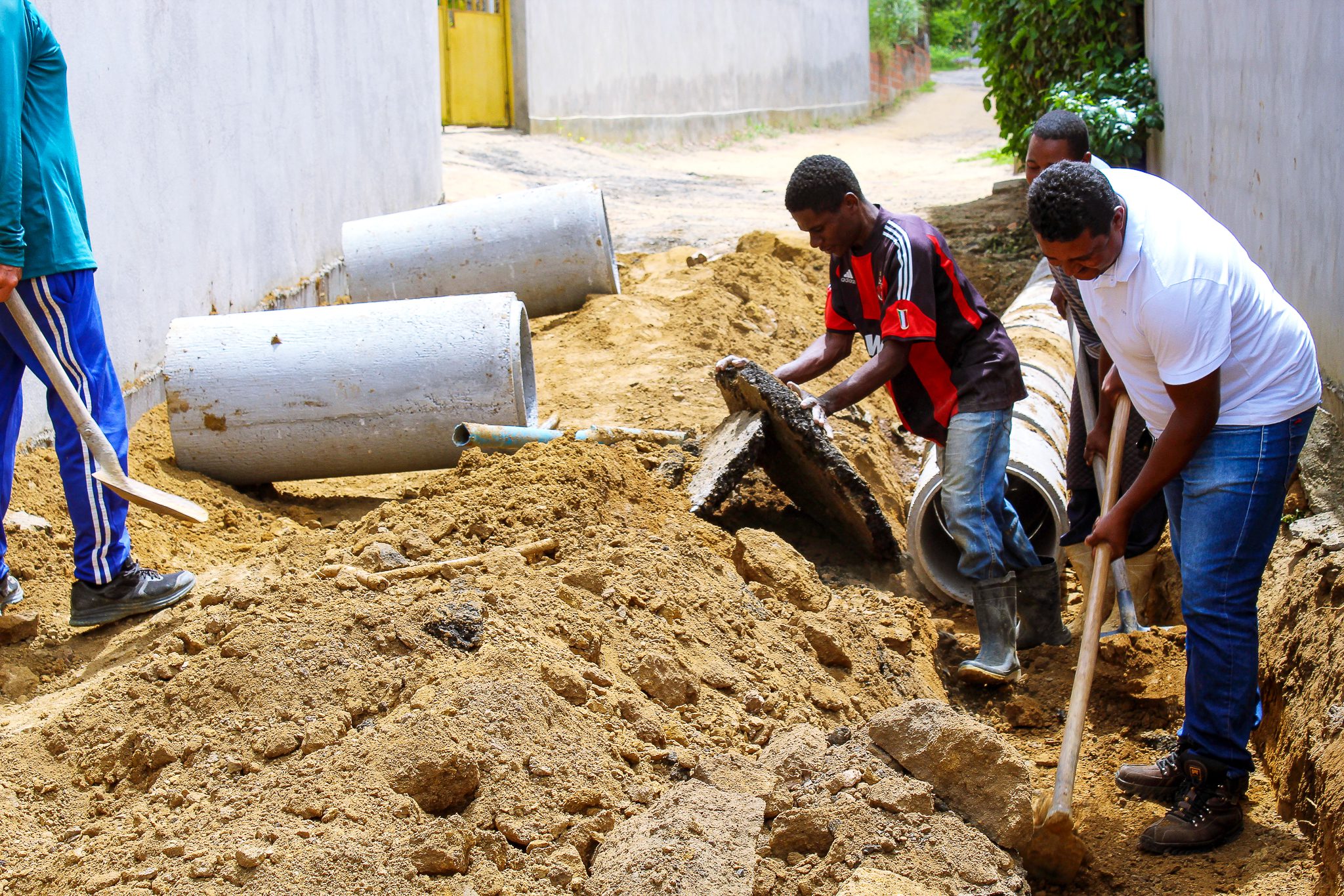 Os serviços de saneamento básico estão sendo feitos na Travessão São Jorge, manilhas já estão sendo colocadas no local, e em breve também haverá utilização de material fresado de asfalto.