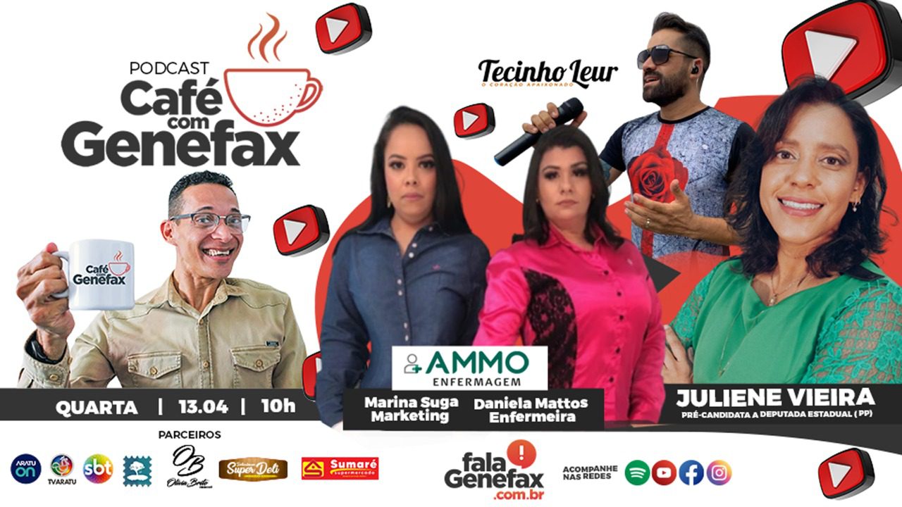 O podcast Café com Genefax é ao vivo a partir das 10h nas redes sociais do portal, com direito aos melhores momentos na Rádio Educadora FM de Conceição do Jacuípe 88.5, através do Programa Juliene Vieira toda sexta, a partir das 17h.