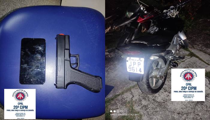 Na abordagem foi encontrado com o elemento conhecido como “Papel” um simulacro de pistola e um aparelho celular, além da motocicleta Honda Tuister preta de placa JPP 9614.