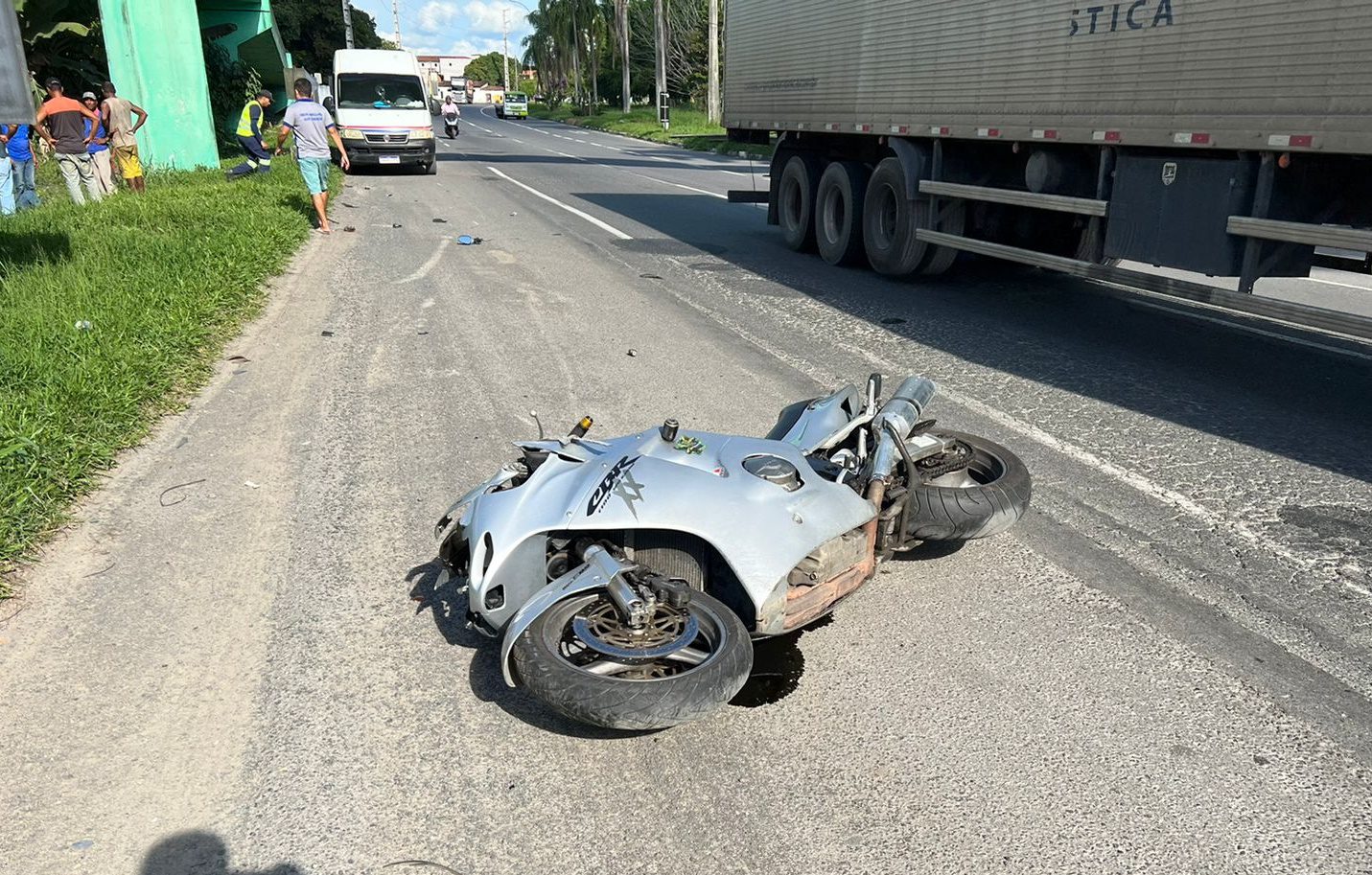Um motociclista ficou ferido após ser ser atingido por um carro de passeio e perder o controle da direção na tarde desta terça-feira (17/5). O acidente ocorreu por volta das 14h20, no km 545 da BR-324, próximo a entrada do município de Amélia Rodrigues.