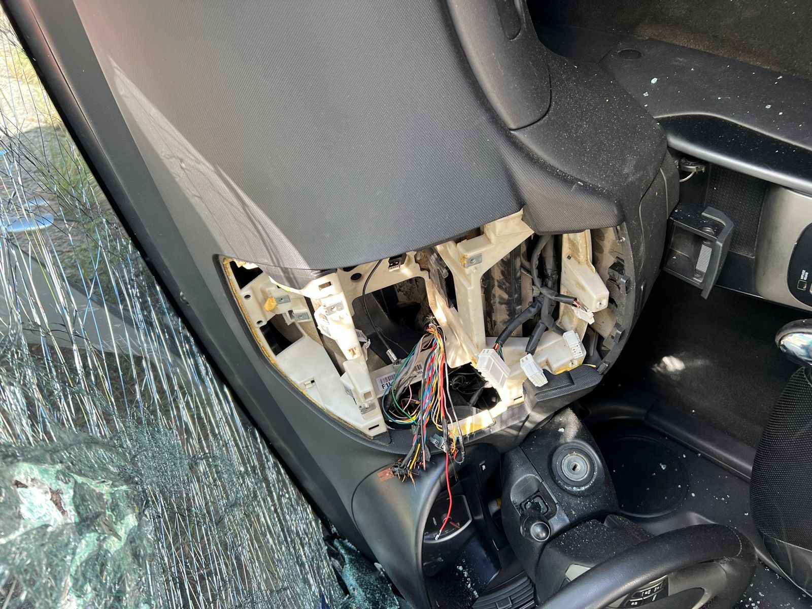 Com o impacto da batida, o carro ficou bastante danificado, sobretudo na parte da frente.