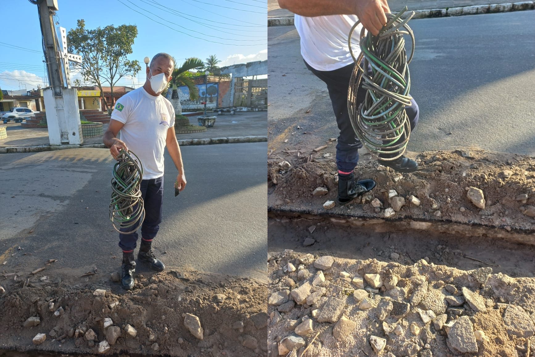 Uma equipe da Guarda Civil Municipal (GCM) de Amélia Rodrigues, flagrou na manhã deste sábado (27/8), um homem furtando os cabos da fiação subterrânea do canteiro central, na praça do Cruzeiro em Amélia Rodrigues.Segundo a equipe da GCM, foi recebido denuncias informando que um homem estaria furtando a fiação do canteiro central que está passando por obras de requalificação. Ao perceber a chegada dos guardas ao local o suspeito fugiu.