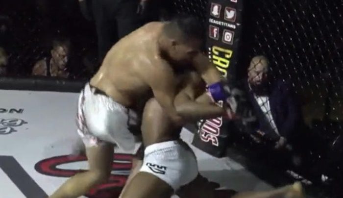 Uma cena chocante marcou o Cage Titans 55, evento realizado em Massachusetts (EUA) no último sábado (27/8). Em confronto entre pesos leves (até 70,3kg.), Kyle Pavao ajustou uma chave de braço em Wayne Downer para quebrar o braço do adversário, que se contorceu de dor após a lesão. A luta marcava a estreia de ambos os atletas no evento de MMA amador.