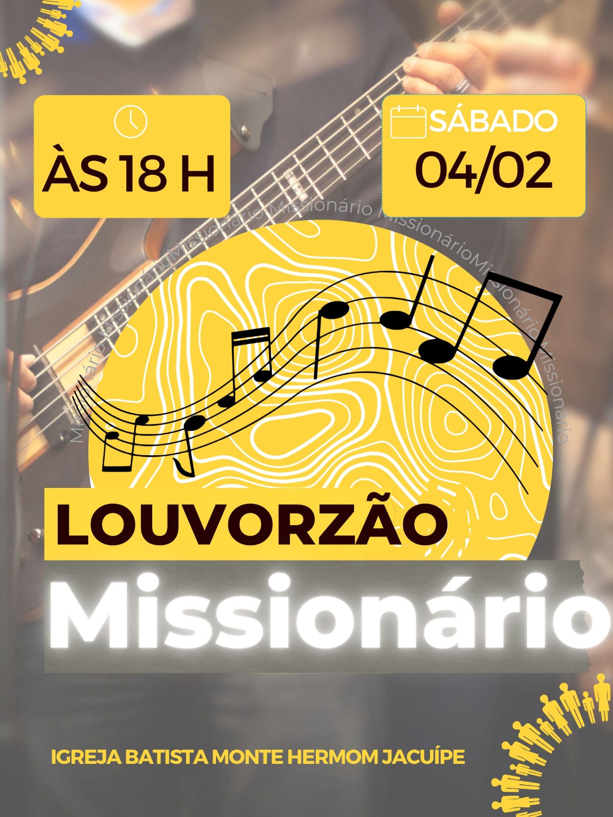 A Igreja Batista Monte Hermon Jacuípe, situada em Conceição do Jacuípe, convida a todos para participar do Louvorzão Missionário, que acontecerá no próximo dia 4 de fevereiro.