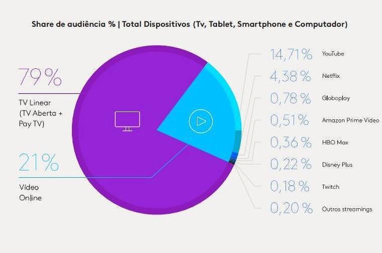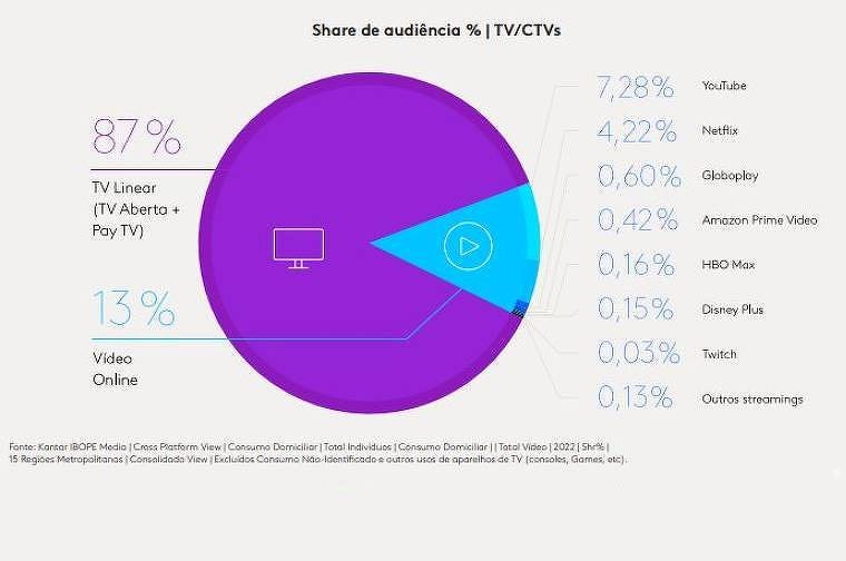 Audiência do streaming e da TV linear em 2022 no país (Imagem: Divulgação / Ibope)