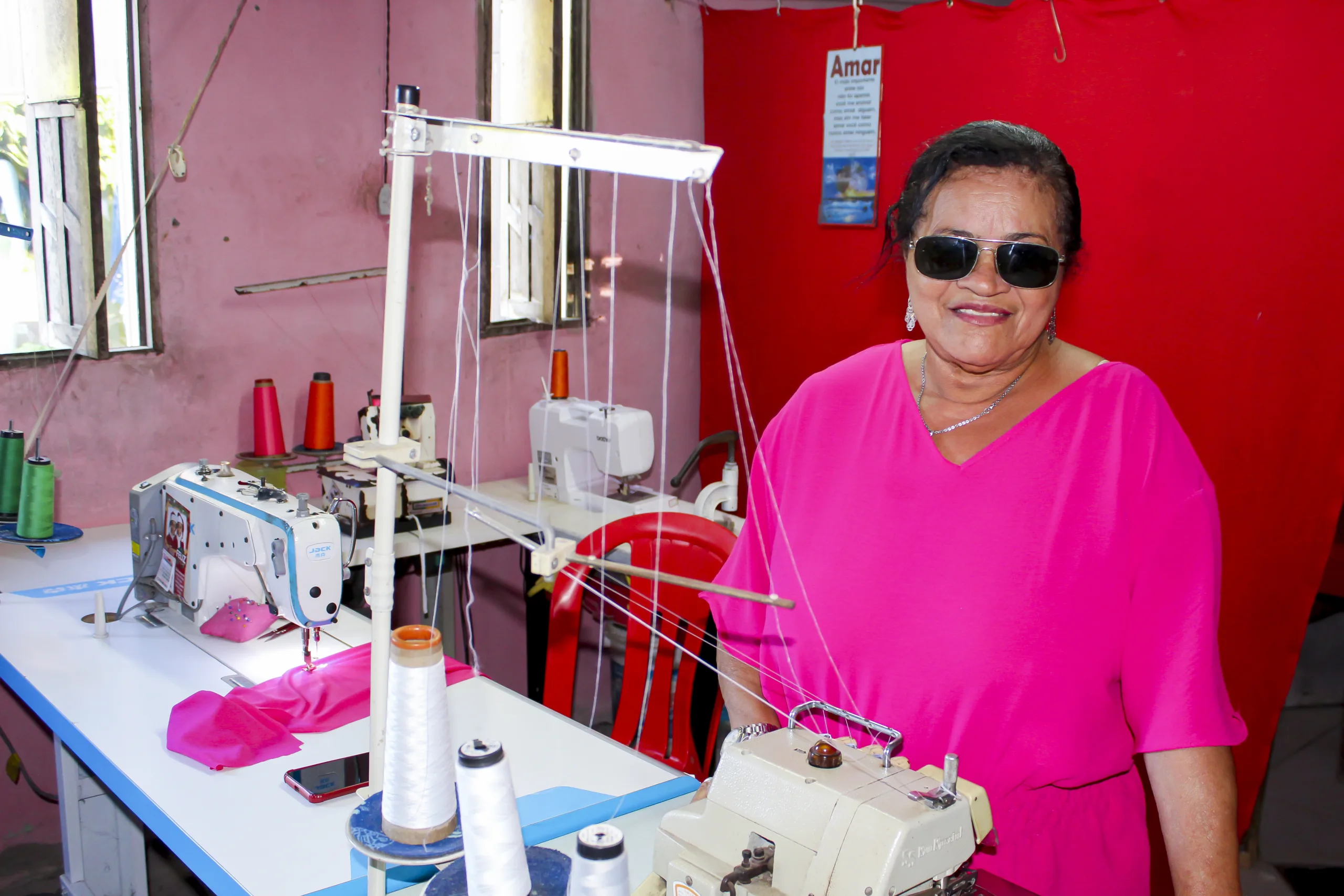 Nessa história de amor e cuidado entre as gerações, Beatriz Rodrigues, de 16 anos, filha de Cláudia e neta de Guê, expressa o carinho que tem pela avó. “Minha vó é tudo para mim e é muito bom ter ela como costureira, porque sempre que a gente compra uma roupa e não vem como desejamos, ela sempre dá um jeitinho e deixa tudo mais bonito.”