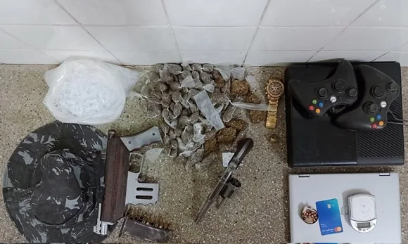 Após os disparos foram encontrados dois elementos ao solo, próximo aos mesmos armas de fogo e vasta quantidade de drogas.