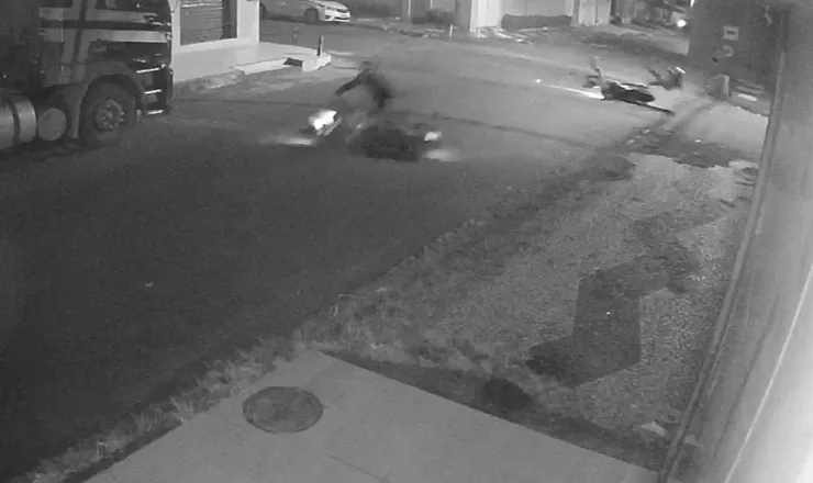 Imagens de uma câmera de segurança registraram o momento do impacto, evidenciando que ambas as motos estavam em alta velocidade.