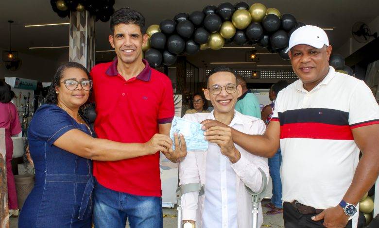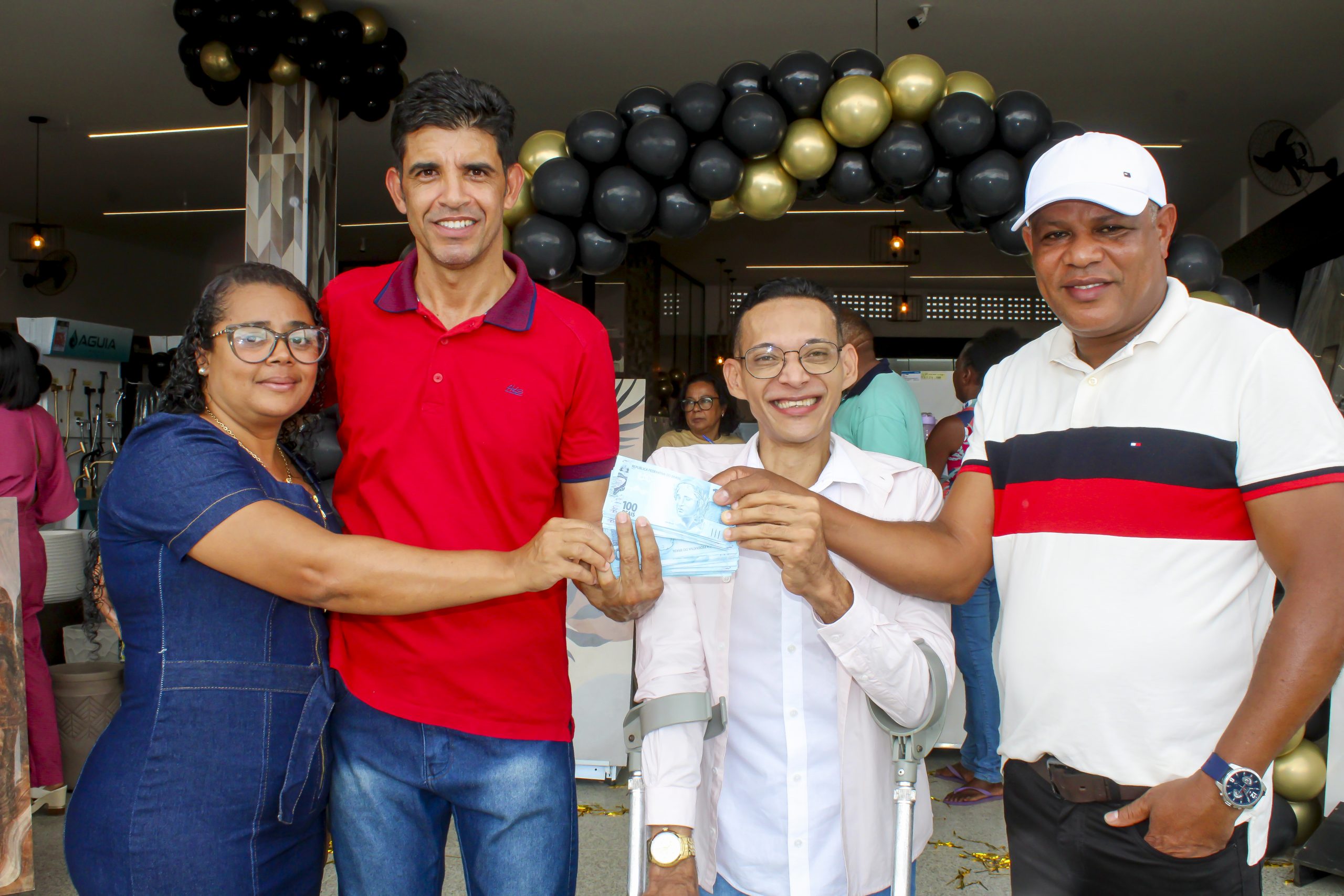 Mas a promoção não parou por aí! A cota premiada também encontrou sua ganhadora. Jaqueline Soares Oliveira, residente do distrito de Oliveira dos Campinhos, em Santo Amaro, foi a felizarda que ganhou um aparelho celular. Sua alegria e surpresa ao receber o prêmio foram contagiantes.