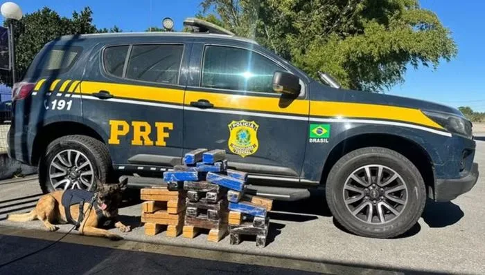 Durante a fiscalização, os policiais encontraram 48 tabletes de maconha, com 40,8 kg, em uma das malas. Além disso, foram localizados mais 30 tabletes, com 26,3 kg da droga, em outra bolsa.