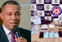 Durante patrulhamento de rotina em uma área conhecida por indícios de tráfico, os policiais avistaram Alan com uma capanga preta no pescoço. Ao abordarem o suspeito, encontraram 61 pedras de uma substância análoga a crack, um pino de pó semelhante a cocaína, uma porção de uma substância análoga a maconha, além de embalagens para acondicionar as drogas. Também foram apreendidos um celular da marca Samsung e R$ 51,00 em dinheiro.