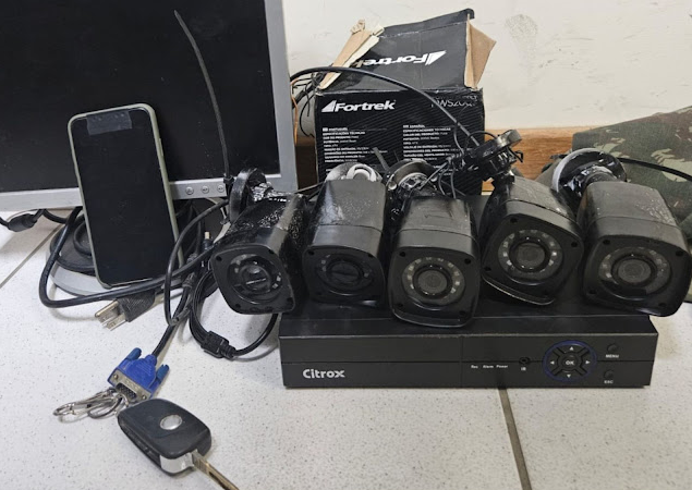 Na ação, foram apreendidas cinco câmeras de segurança, um monitor, um DVR com capacidade para oito câmeras, um modem de internet, três suportes para câmeras, um aparelho celular e uma roupa camuflada. Todo o material foi encaminhado à central de flagrantes no Complexo de Delegacias do Sobradinho.