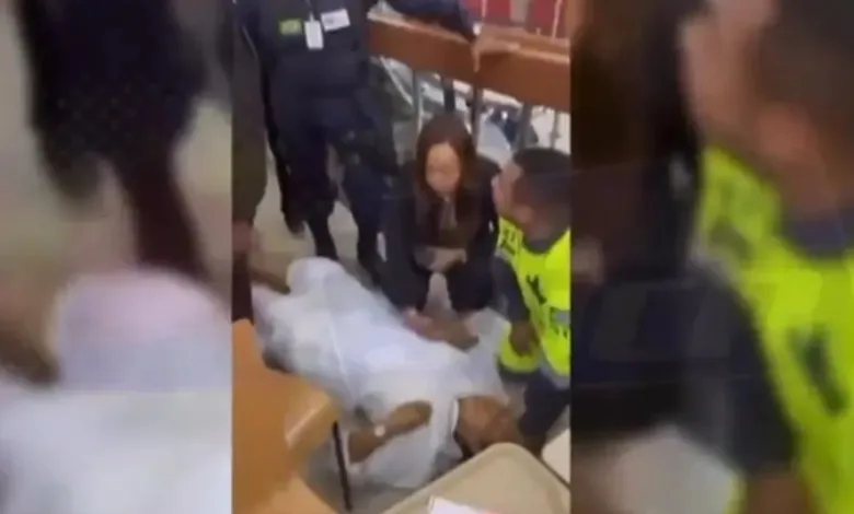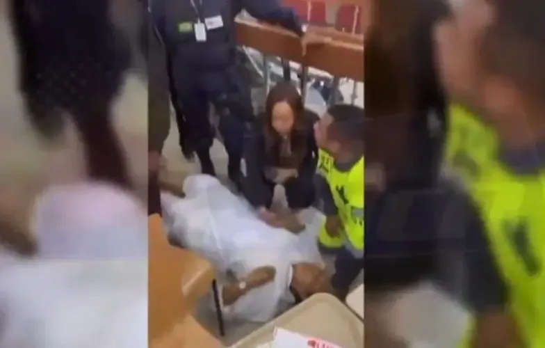 Imagens registradas no local mostram uma mulher caída no chão enquanto é atendida por uma equipe do Corpo de Bombeiros, que foi rapidamente acionada para prestar os primeiros socorros. O estado de saúde dela ainda não foi divulgado, e não está claro se o ocorrido foi uma brincadeira de mau gosto ou um incidente acidental.