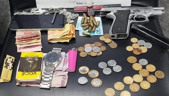 Durante a abordagem, o motorista do veículo tentou fugir, mas foi rapidamente interceptado pelos policiais na Rua Castro Alves. Na revista, a polícia encontrou em posse do casal uma pistola calibre .380, 15 munições intactas do mesmo calibre, além de R$ 342,45 em espécie e outros pertences pessoais.
