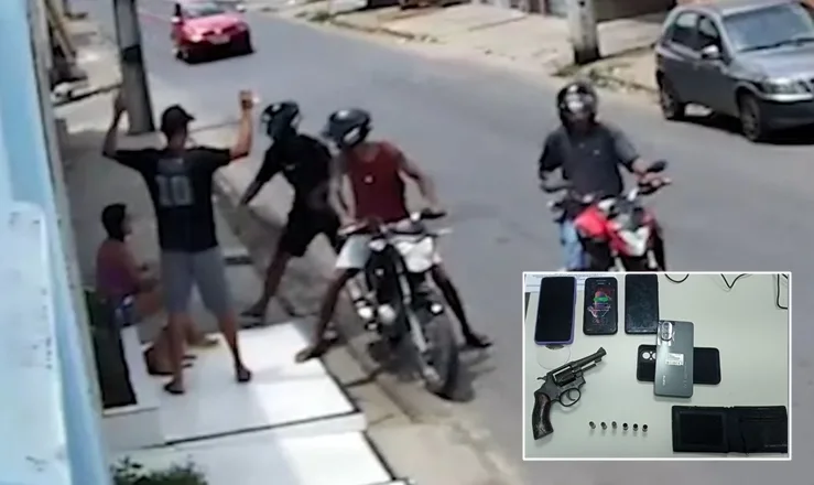 Nas imagens, a dupla aparece em uma motocicleta abordando pessoas em uma calçada. Sob a mira de um revólver, as vítimas tiveram seus pertences roubados. Apesar do susto, ninguém ficou ferido durante a ação.