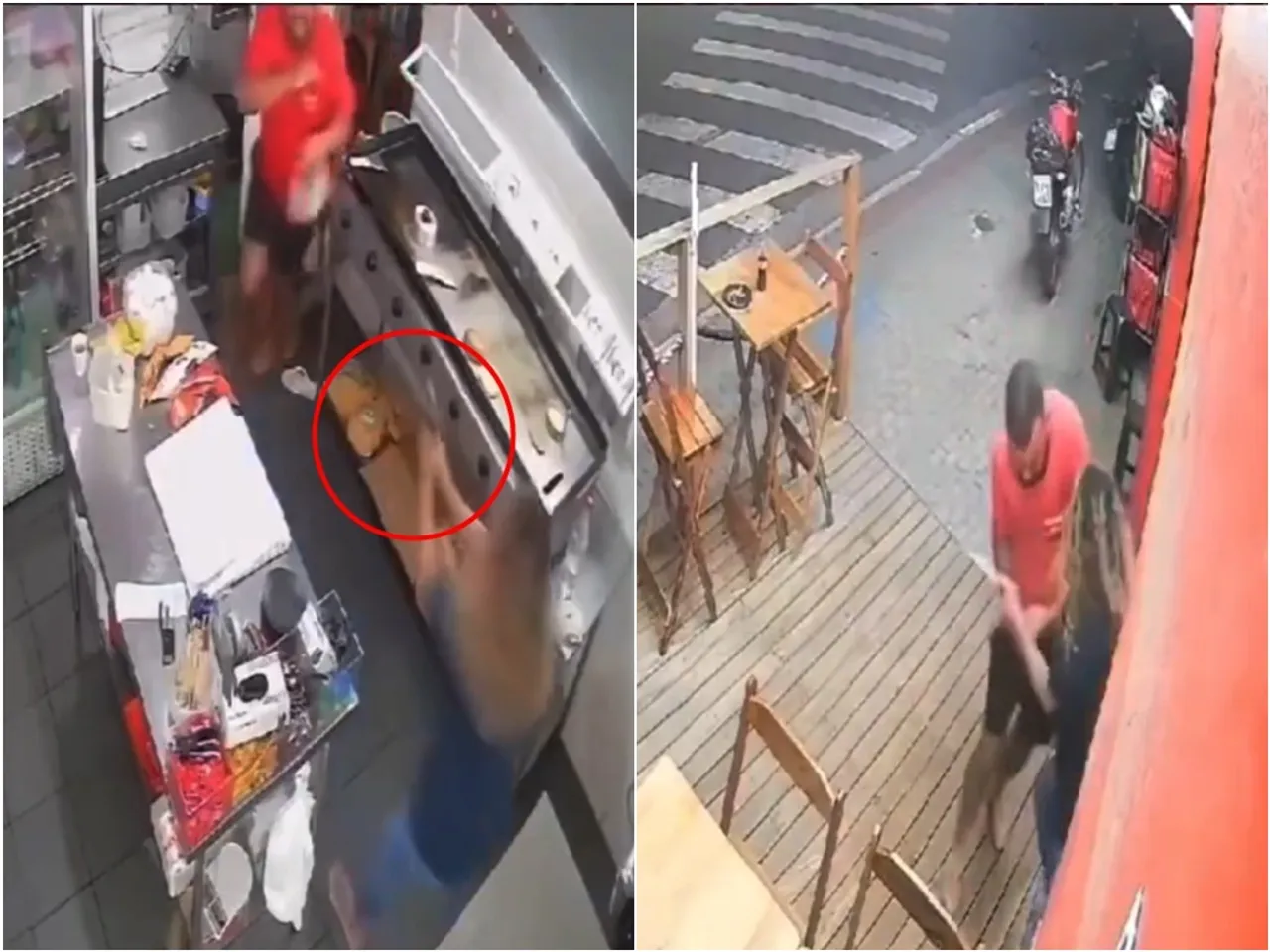 VÍDEO! Mulher morre após invadir lanchonete e tentar assassinar o marido
