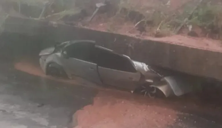 Um carro ficou completamente destruído após ser atingido por uma estrutura de concreto durante um deslizamento de terra ocorrido na madrugada desta sexta-feira (2), no município de Simões Filho, na Região Metropolitana de Salvador (RMS). O acidente, registrado pelo próprio dono do veículo, aconteceu em meio às fortes chuvas que atingem a cidade desde a noite anterior.