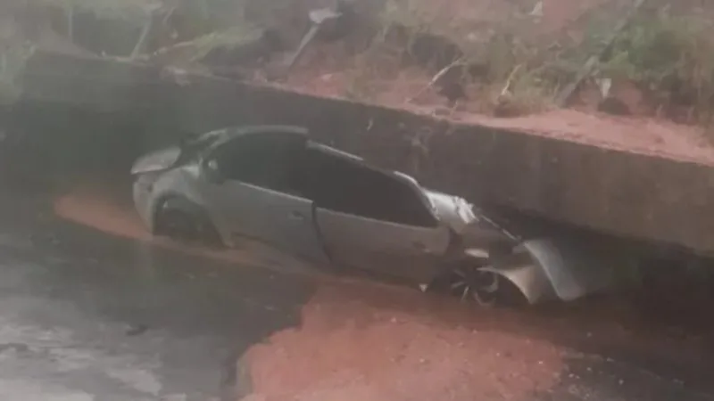 Um carro ficou completamente destruído após ser atingido por uma estrutura de concreto durante um deslizamento de terra ocorrido na madrugada desta sexta-feira (2), no município de Simões Filho, na Região Metropolitana de Salvador (RMS). O acidente, registrado pelo próprio dono do veículo, aconteceu em meio às fortes chuvas que atingem a cidade desde a noite anterior.