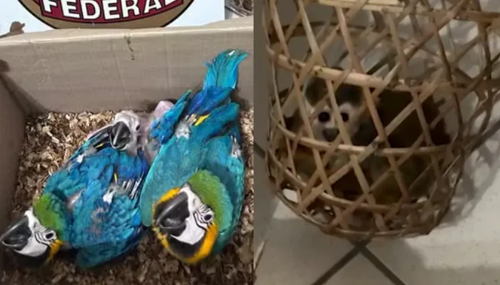 Durante a inspeção, os policiais encontraram uma carga de mangas e, entre as frutas, os animais silvestres escondidos em condições precárias, com evidentes sinais de maus-tratos. As autoridades informaram ainda que as araras seriam vendidas por R$ 1.800 cada, enquanto o macaco mão-de-ouro estava avaliado em R$ 3.000, valores comumente praticados no tráfico de animais silvestres.
