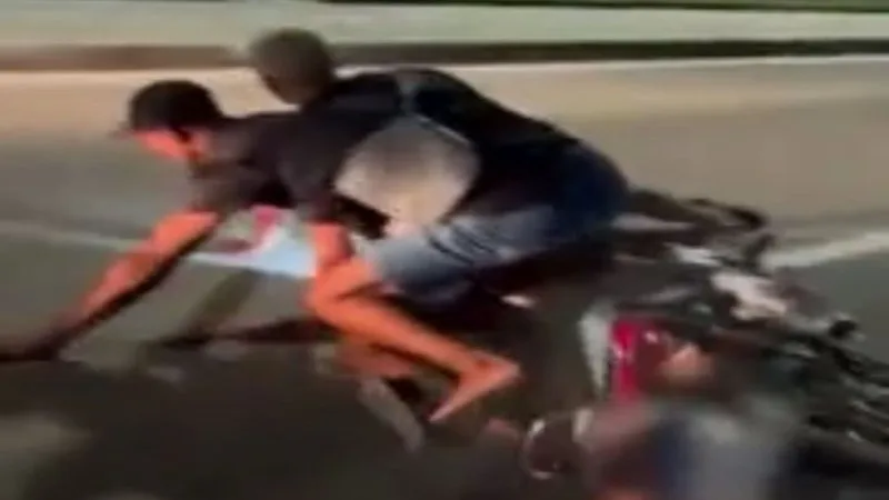 Um vídeo que circula nas redes sociais neste fim de semana tem causado preocupação e revolta entre os internautas. As imagens mostram dois homens realizando acrobacias perigosas com uma motocicleta em movimento em uma via pública, quando se desequilibram e caem violentamente no asfalto.