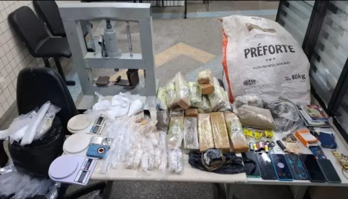 Ao entrarem no imóvel, os policiais se depararam com uma verdadeira estrutura de laboratório clandestino para o refino, preparo e embalagem de drogas ilícitas.