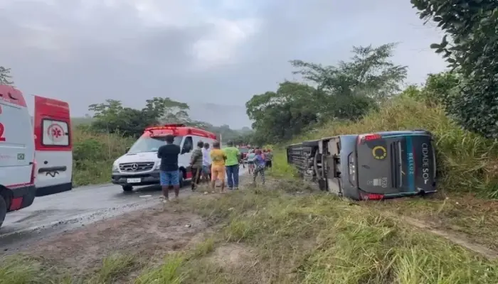 Um grave acidente foi registrado na madrugada deste sábado (21/6), na BA-120, no trecho conhecido como Curva do Canta Galo, entre o município de Ibirataia e o distrito de Algodão, no sul da Bahia. Um ônibus interestadual da empresa Cidade Sol, que fazia a linha Salvador/Ubatã, tombou às margens da rodovia por volta das 4h da manhã.