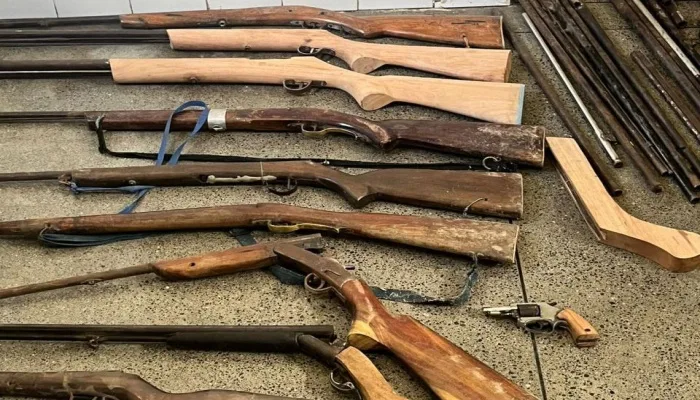 No total, foram apreendidas oito espingardas, sendo duas de calibre 32, um revólver calibre 22, diversas munições e várias peças de armas desmontadas. A oficina funcionava de forma totalmente irregular e representava um risco à segurança pública da região.