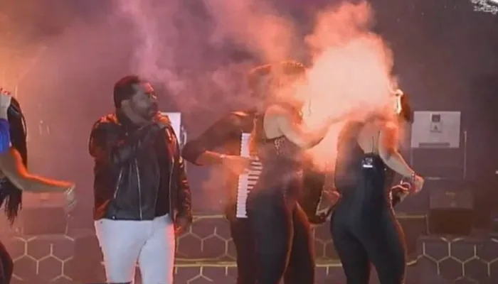 VÍDEO: Backing vocal da banda Limão com Mel tem cabelo atingido por fogo durante show