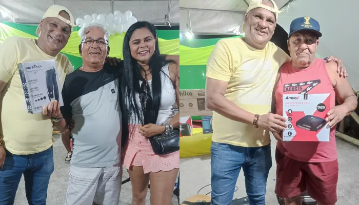 O evento aconteceu na Praça de São Bento e reuniu moradores da comunidade e regiões vizinhas. Entre os prêmios sorteados estavam uma TV de 32 polegadas, caixa de som, air fryer, furadeira e parafusadeira, ventilador, batedeira, liquidificador, ferro elétrico, entre outros itens.